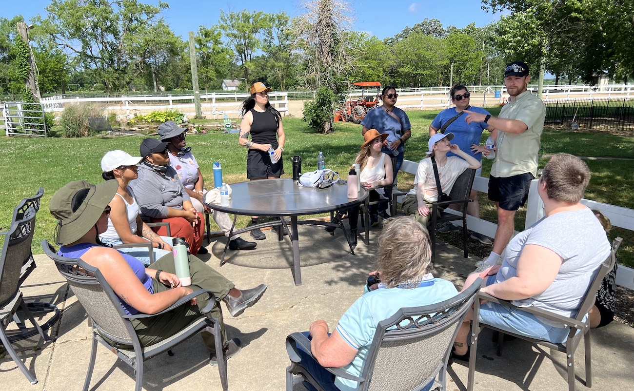 Adler University students gathered around a patio table, under the shade of a tall tree while a strong breeze tried to keep them cool. By noon, it was nearly 88 degrees and rising at ERC Farms in Marengo, Illinois.